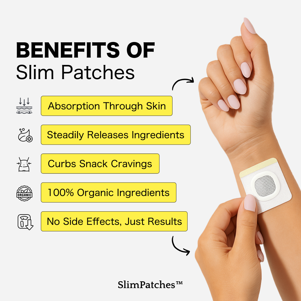 The SlimPatch uses natural ingredients that are generally well-tolerated. Some users may experience mild skin irritation at the application site, which typically resolves by rotating application areas. As with any supplement, individual responses may vary. We recommend consulting with your healthcare provider before starting any new supplement regimen, especially if you have underlying health conditions or take medications.